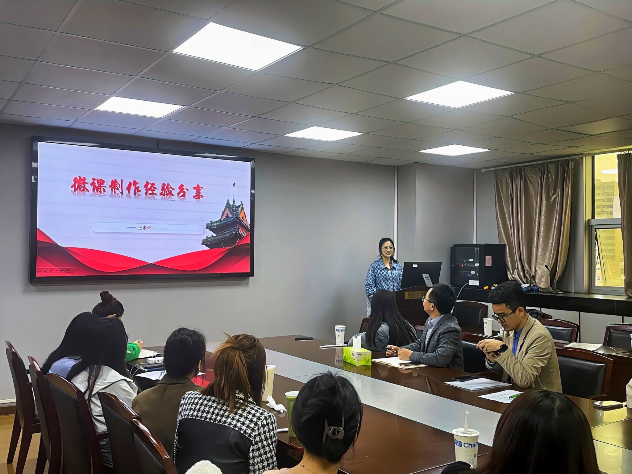 资环成人电影办公室主任王未未从选题、教学设计(方案)、拍摄、后期剪辑四个方面作,分享了微课制作经验,鼓励各位老师,运用微课教学,展现丰富的教学内容,提供灵活多样的学习方式,促进学生的主动学习和深度理解。她鼓励在场的辅导员做实一门课,做深一堂课,在具体的育人工作中激发工作热情,为培养更多具有爱国主义情怀和创新精神人才贡献力量。
